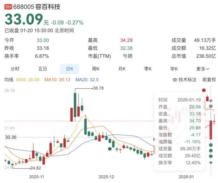 立案调查的消息,击碎了容百科技的转型幻想,资本表现应声暴跌。虽然公告将责任甩给磷酸铁锂事业部,称“董事会秘书未按制度报董事长签发”,试图将个体违规归因为部门疏漏,但洽洽透露出其内控机制形同虚设,即便没有此次合同事件,后续也可能因管理漏洞引发更多风险。1月18日公告立案后,市场信心崩塌,首日跌幅高达11.16%。